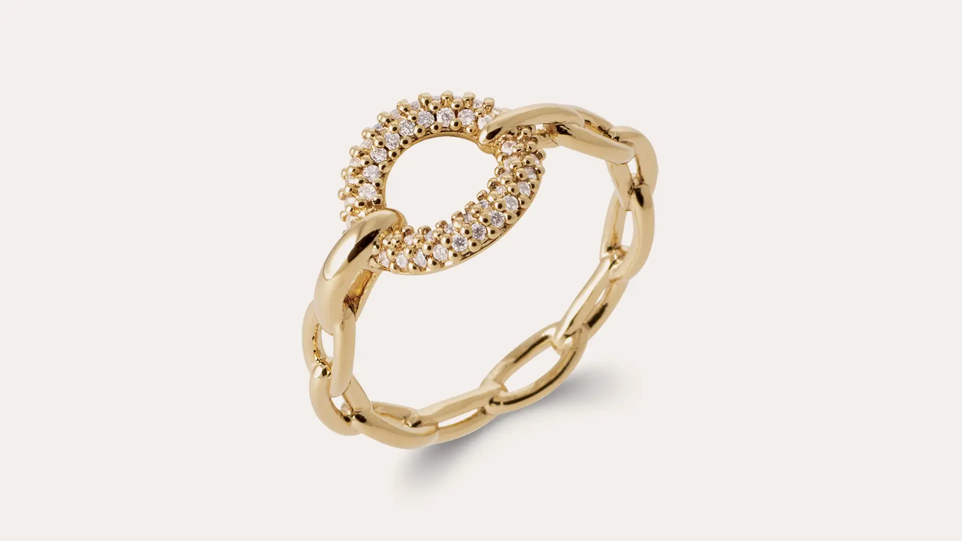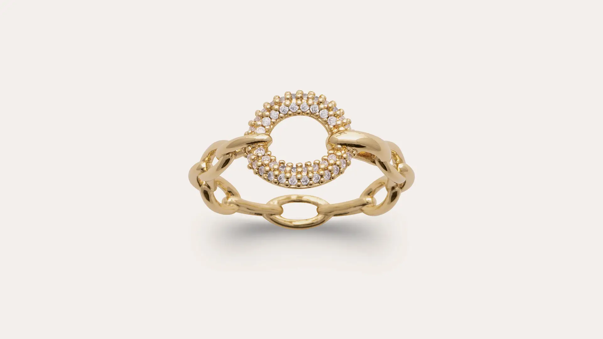 18kt gold plated disc ring with zircons and beads