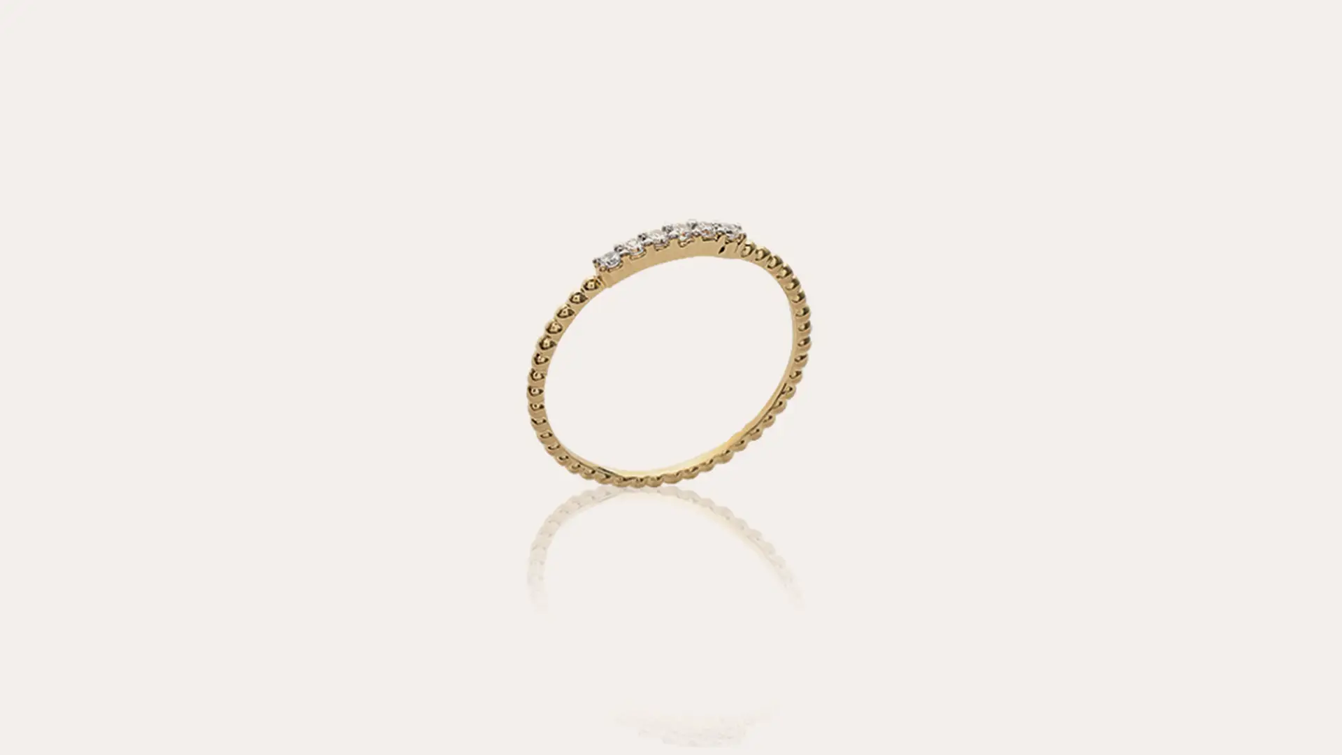 Thin 1mm band ring with bead structure and 6 micro cubic zirconia on the outside