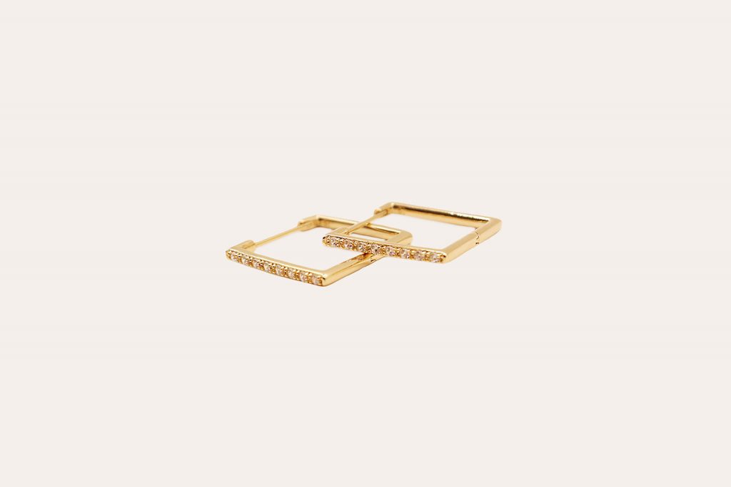 Square créole earrings (2cm side), 1mm thick, front side with cubic zirconia alternating with micro beads