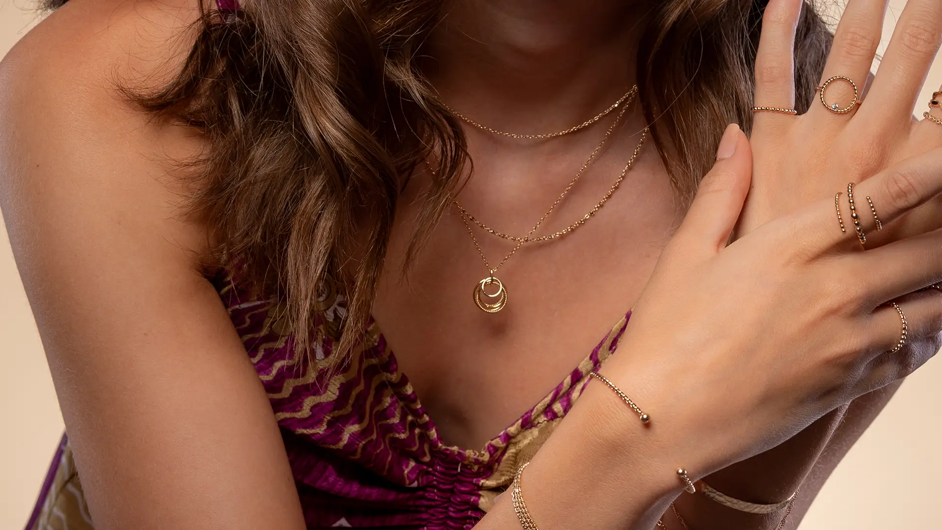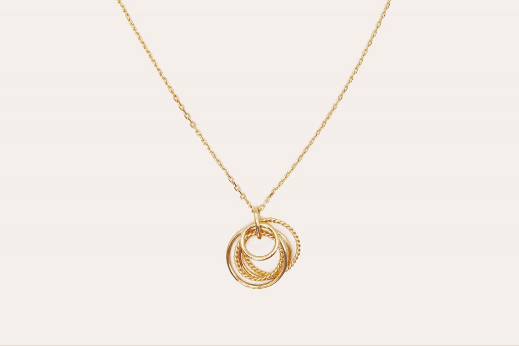 Wedding ring pendant necklace different from each other in textures and sizes (from 6 to 13 mm)