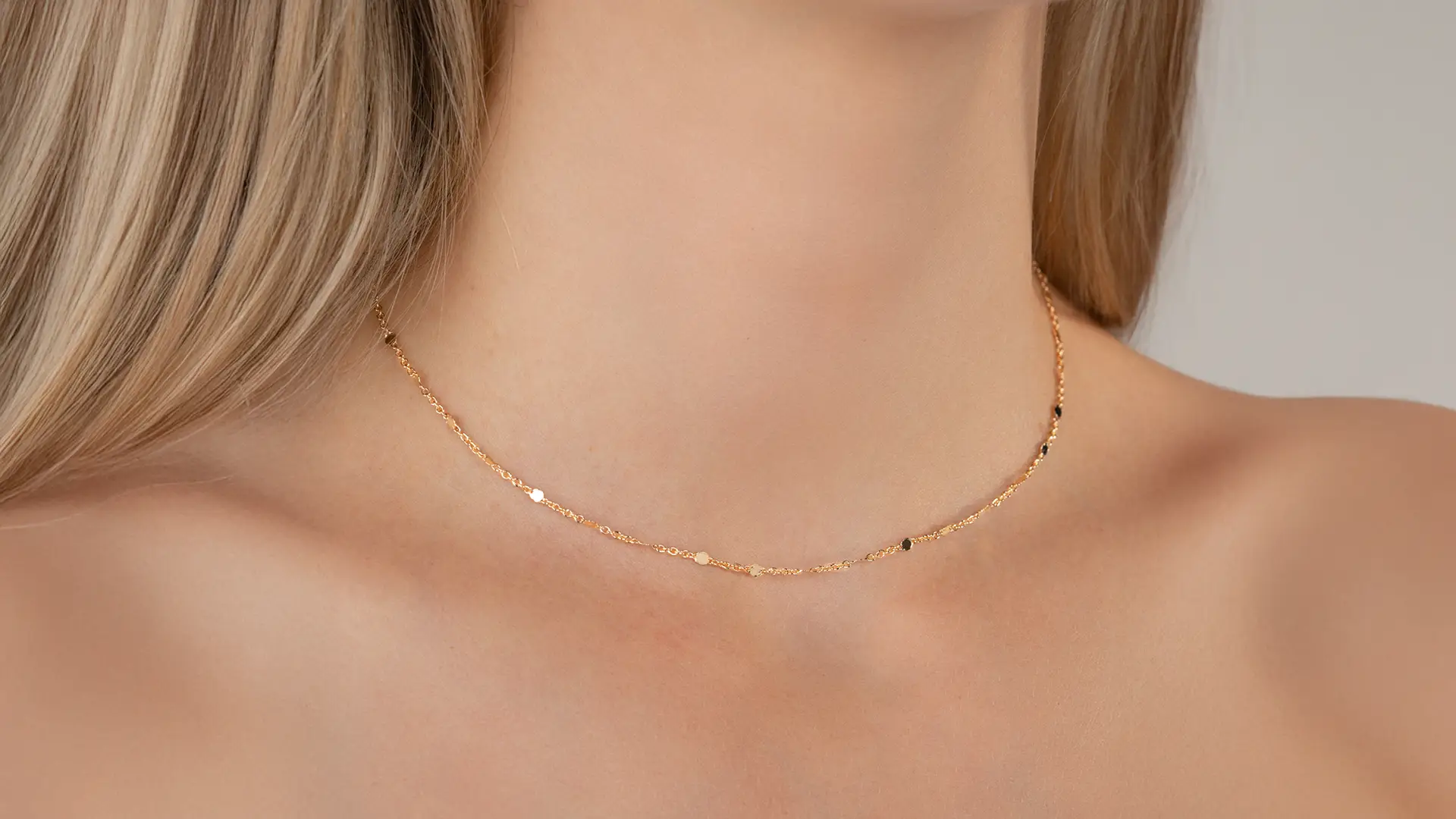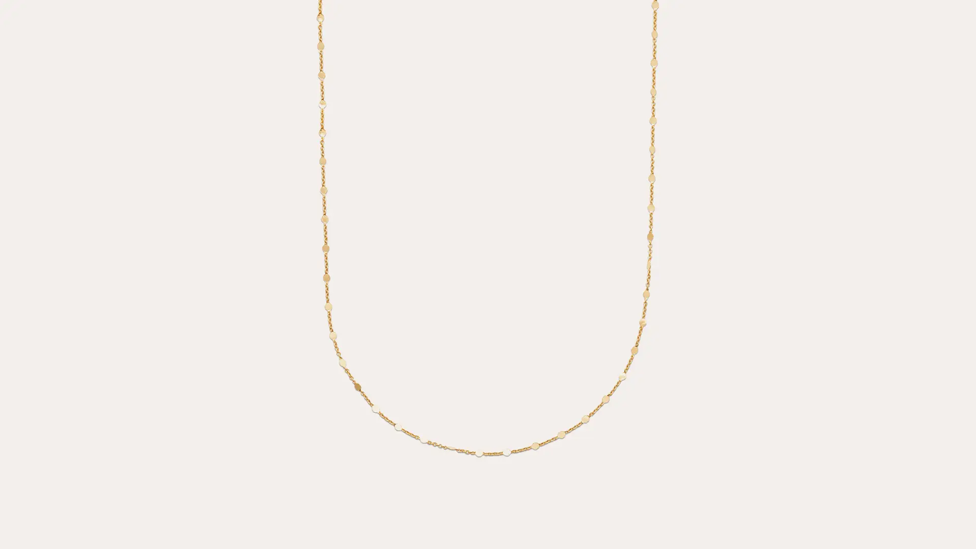 Chllana thin chain alternating with small shiny discs of diameter