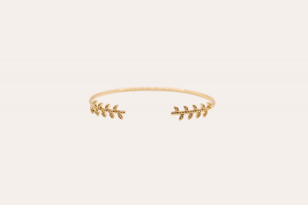 Rigid bracelet with 3×1 mm leaves with micro zircons set inside each leaf