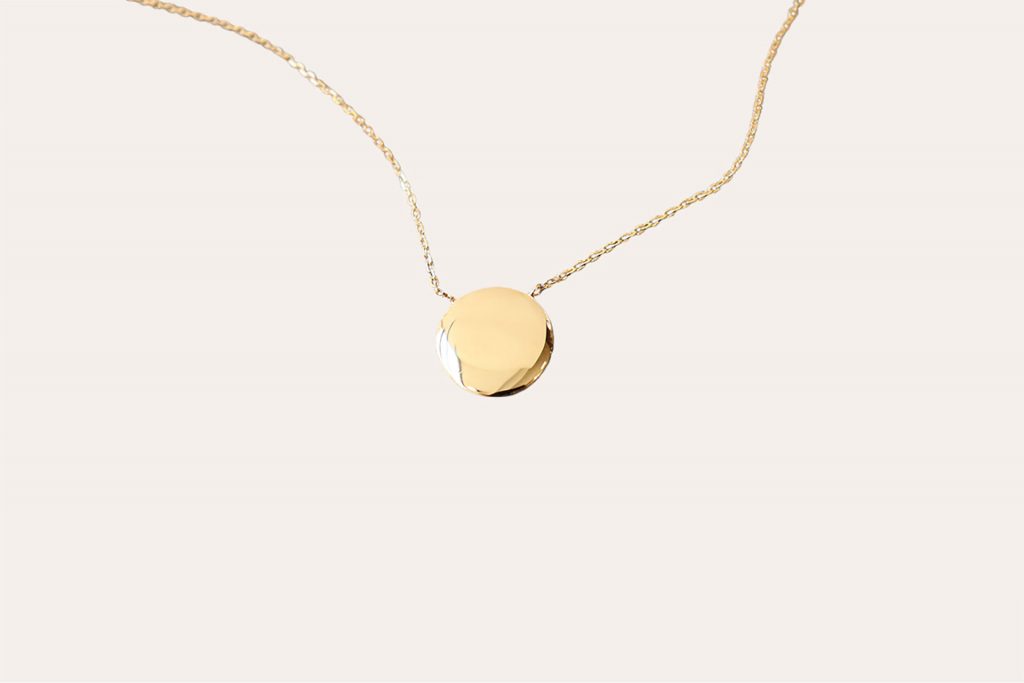 Necklace with highly polished disc pendant diameter 13mm, gently tapers into the edge which remains very thin;