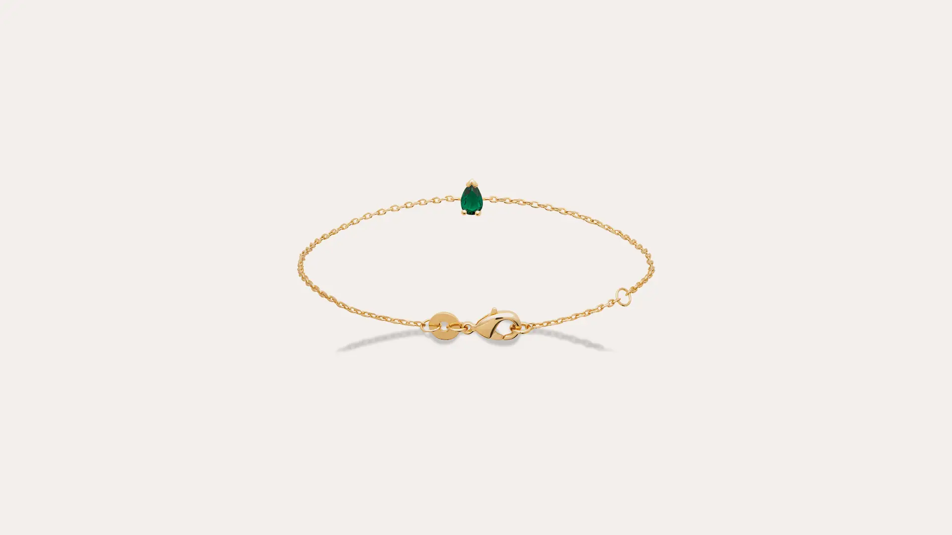 Bracciale con inserito uno zircone tagliato a goccia di colore verde intenso e luminoso (mm3x6),posizionato in verticale rispetto alla catena