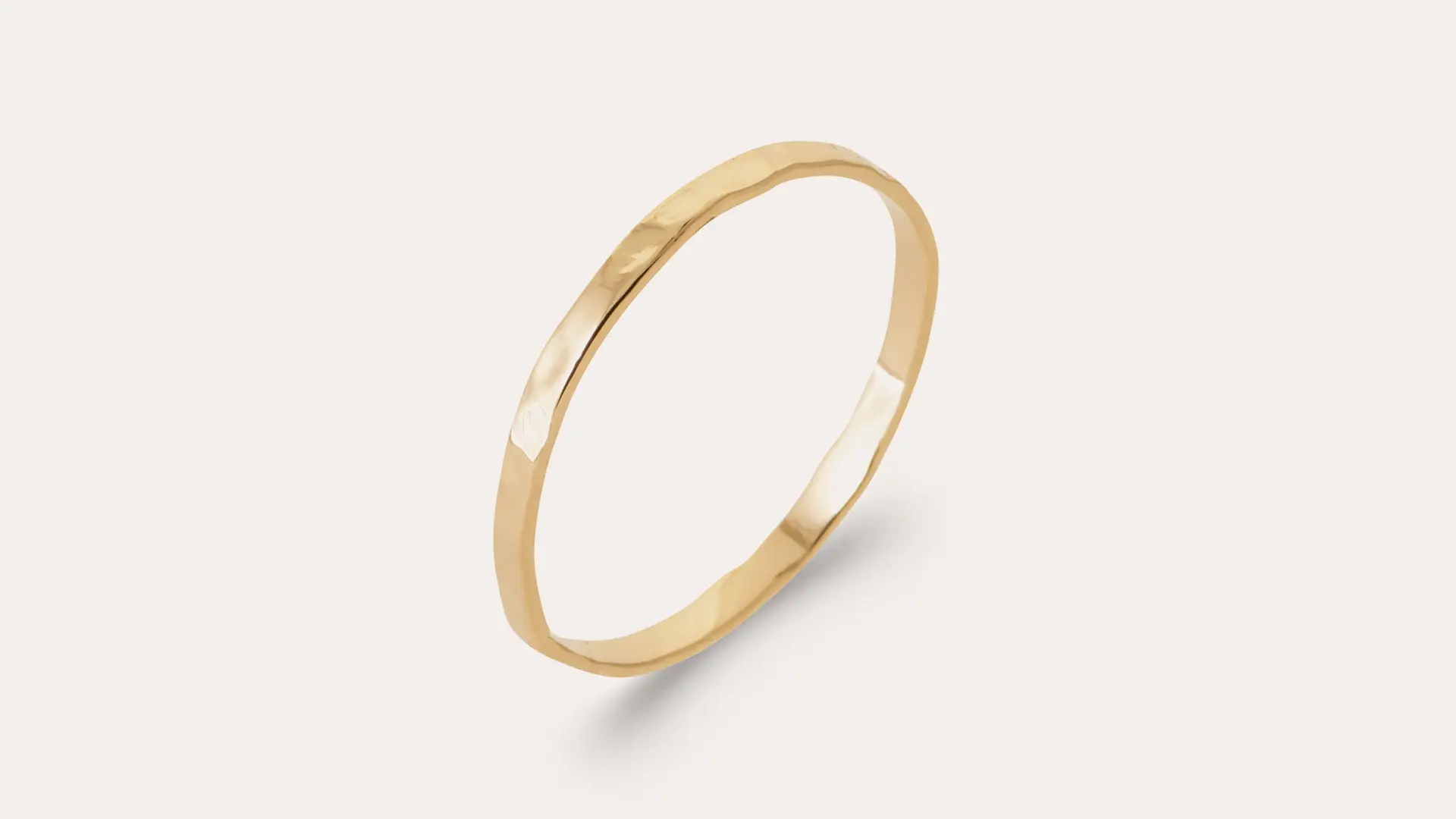 Anello fedina a fascia piatta con superficie martellata e lucida di 1,5mm