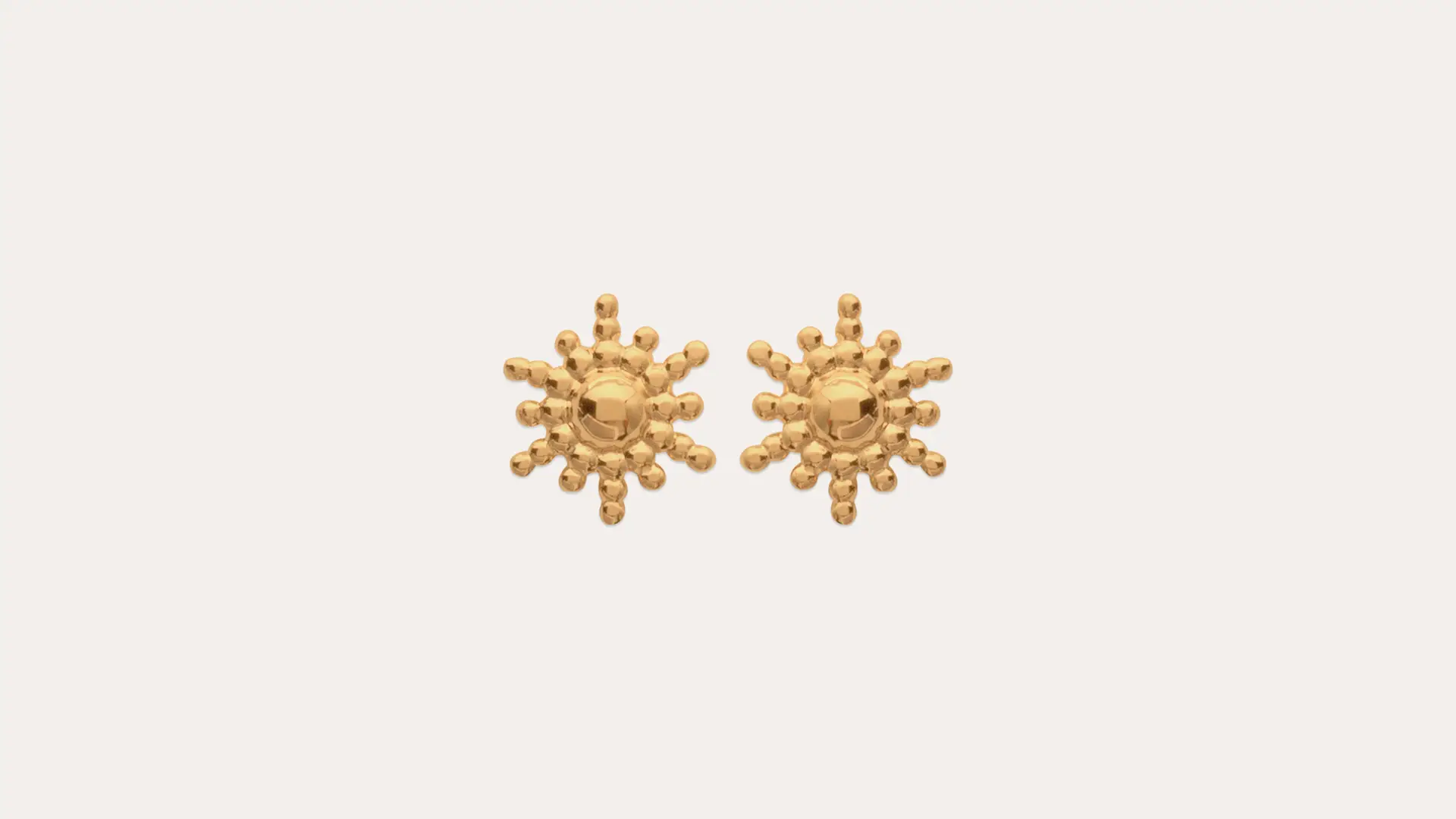 Orecchini a lobo fatti a Sole con piccoli raggi a pallini bombati, misura 6mm,accattivanti e adatti ad abbinamenti con altri orecchini anche da secondo e terzo buco