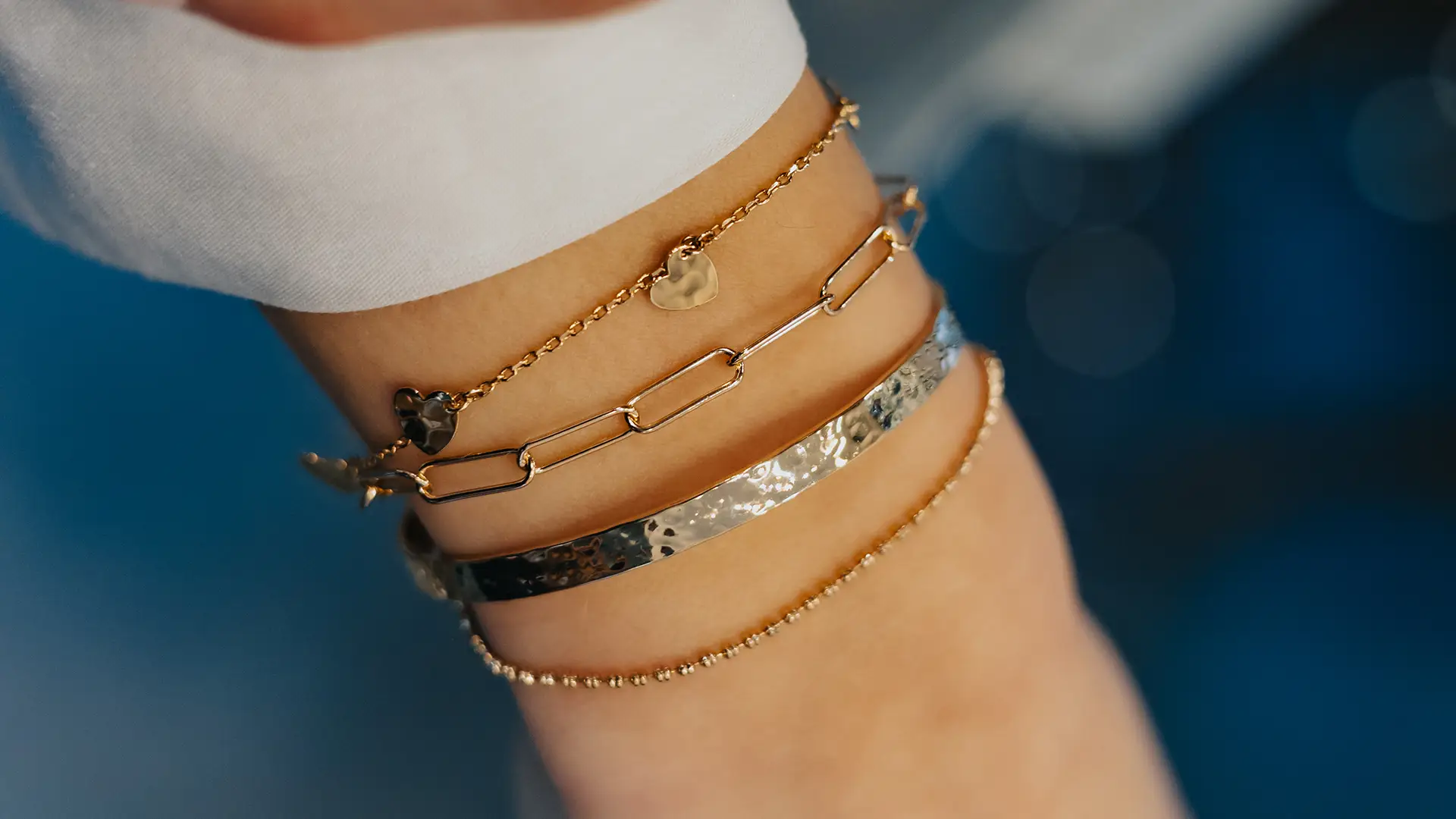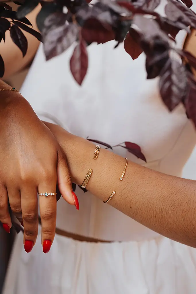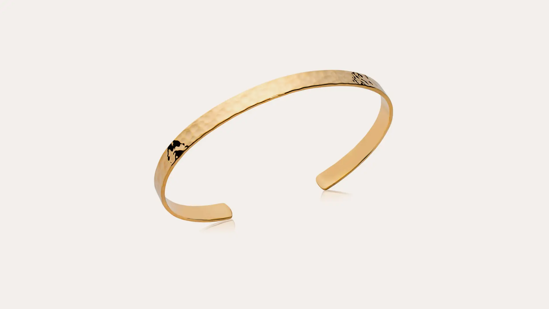 Bracciale rigido (Jonc) fatto a fascia alta 4 mm, superficie martellata e lucida,spessore di 1mm gli conferisce robustezza lasciando pero’ l’elasticità per poterlo adattare al proprio polso.