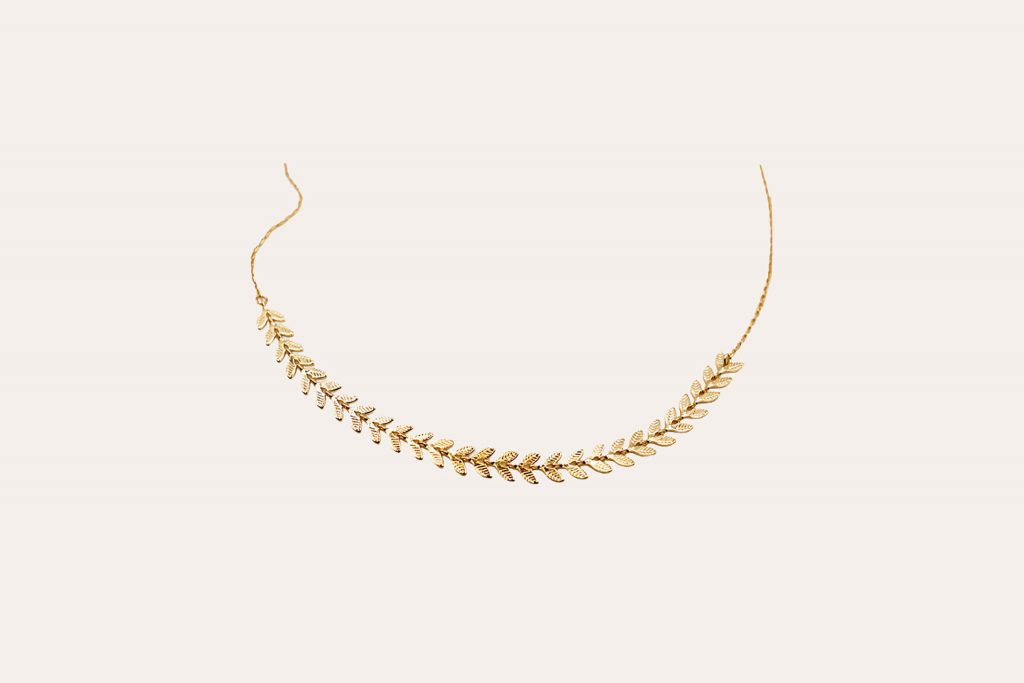 Collana con motivo a piccole foglie incise, mobili, allineate a spina pesce