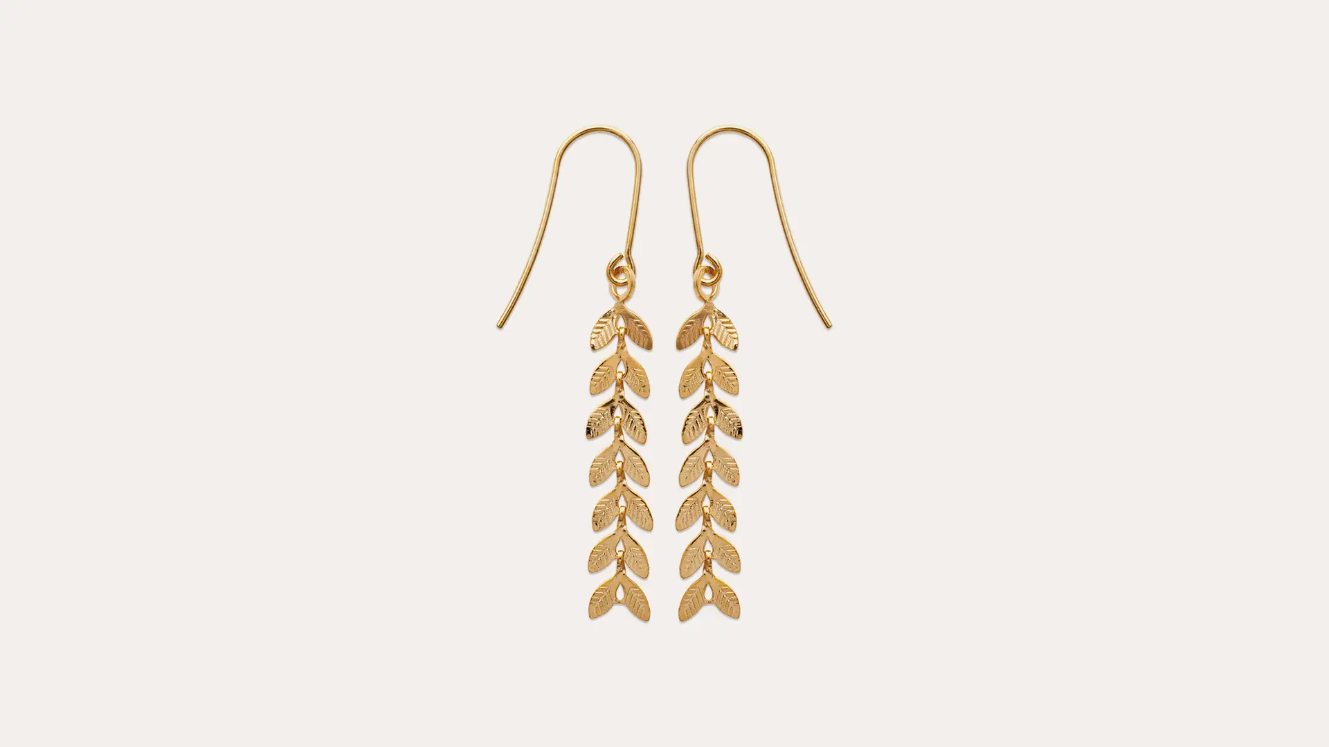 Orecchini con pendente a foglie incise con effetto etnic,unite tra loro da anelli per dare mobilità al pendente