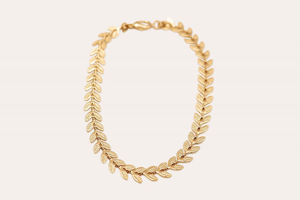 Bracciale a piccole foglie incise, allineate a spina pesce, mobili;